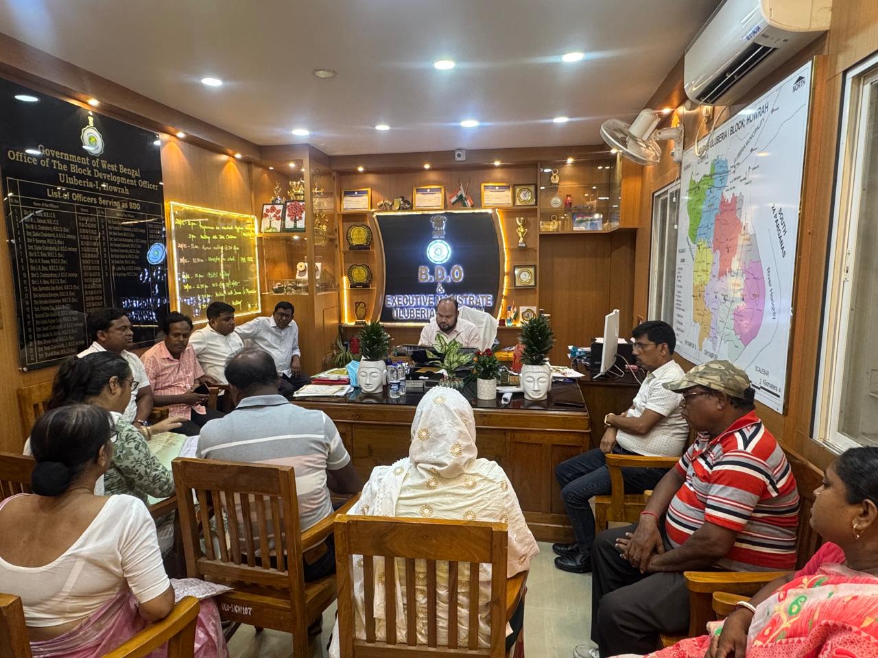 আজ উলুবেড়িয়া-১ ব্লকে বিডিও (BDO) এইচ. এম. রিয়াজুল হকের নেতৃত্বে অনুষ্ঠিত হলো বন ও ভূমি সংস্কার স্থায়ী সমিতির এক গুরুত্বপূর্ণ সভা। পাট্টা প্রদান সংক্রান্ত এই মিটিংয়ে উপস্থিত ছিলেন উলুবেড়িয়া-১ পঞ্চায়েত সমিতির সভাপতি অতীন্দ্রশেখর প্রামাণিক, বন ও ভূমি কর্মাধ্যক্ষ প্রশান্ত সাধুখান, পূর্ত কর্মাধ্যক্ষ আজিজুল ইসলাম মোল্লা, কৃষি কর্মাধ্যক্ষ মুরাদ আলি, মৎস্য কর্মাধ্যক্ষ শেখ মফিজুল, B.L. & L.R. হিয়া গাঙ্গুলী, উলুবেড়িয়া-১ ব্লকের কর্মকর্তারা ও ফরেস্ট ডিপার্টমেন্টের প্রতিনিধিগণ।